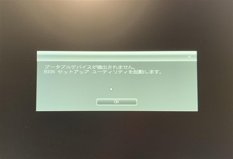 「ブータブルデバイスが検出されません。BIOSセットアップユーティリティを起動します。」